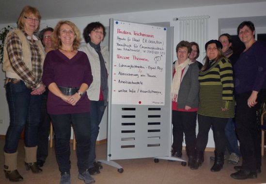 Referentin Andrea Teichmann (4. von links) mit den ASF-Frauen Langquaid; Eindringliche Sätze wie „Für Mädchen ist es kein guter Rat, einen typischen Frauenberuf zu wählen“ und „nach der Geburt des Kindes ist jede Frau gut beraten, so schnell wie möglich und so viel wie möglich wieder zu arbeiten“, blieben den Zuhörerinnen des ASF-Vortrags „Frauen am Arbeitsmarkt“ in Erinnerung.