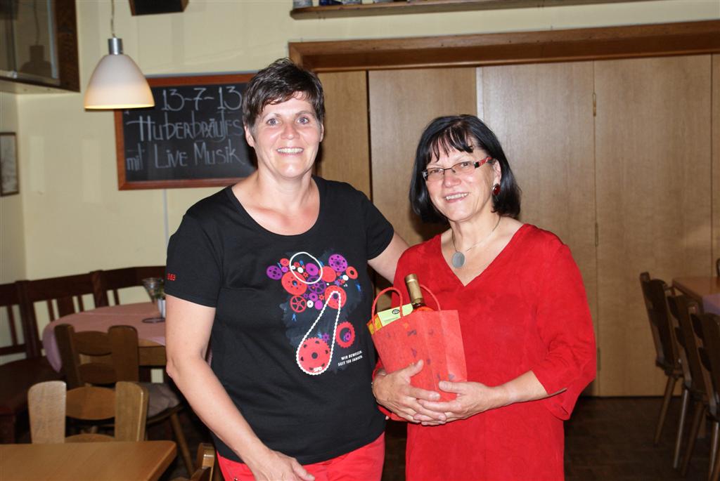 Kirsten Reiter dankt Johanna Werner-Muggendorfer mit Eine-Welt-Geschenk