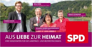 Gerhard Böckl, Anke Veit und Kirsten Reiter reisten als Delegierte der Langquaider SPD zur Aufstellungsversammlung für die Landtags- und Bezirkstagskandidaten nach Bad Gögging. Jeweils mit voller Zustimmung wurden Johanna Werner-Muggendorfer als Direktkandidatin und Tom Schug als Listenkandidat für den Landtag nominiert. Für den Stimmkreis bei den Bezirkstagswahlen kandidieren Willi Dürr und Renate Schweiger.