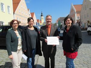 Im Beisein von Frau Gertrud Eichenseer, Koordinatiorin der Flüchtlingsarbeit (links), SPD-Vorsitzender Kirsten Reiter (rechts) und AsF-Vorsitzender Anke Veit und Bürgermeister Herbert Blascheck wurde die Kontonummer bekannt gemacht.